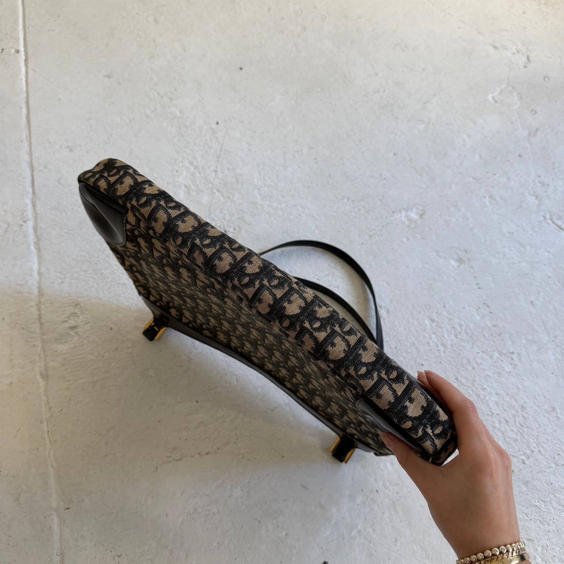 Christian Dior Navy Trotter Gold CD Shoulder Bag