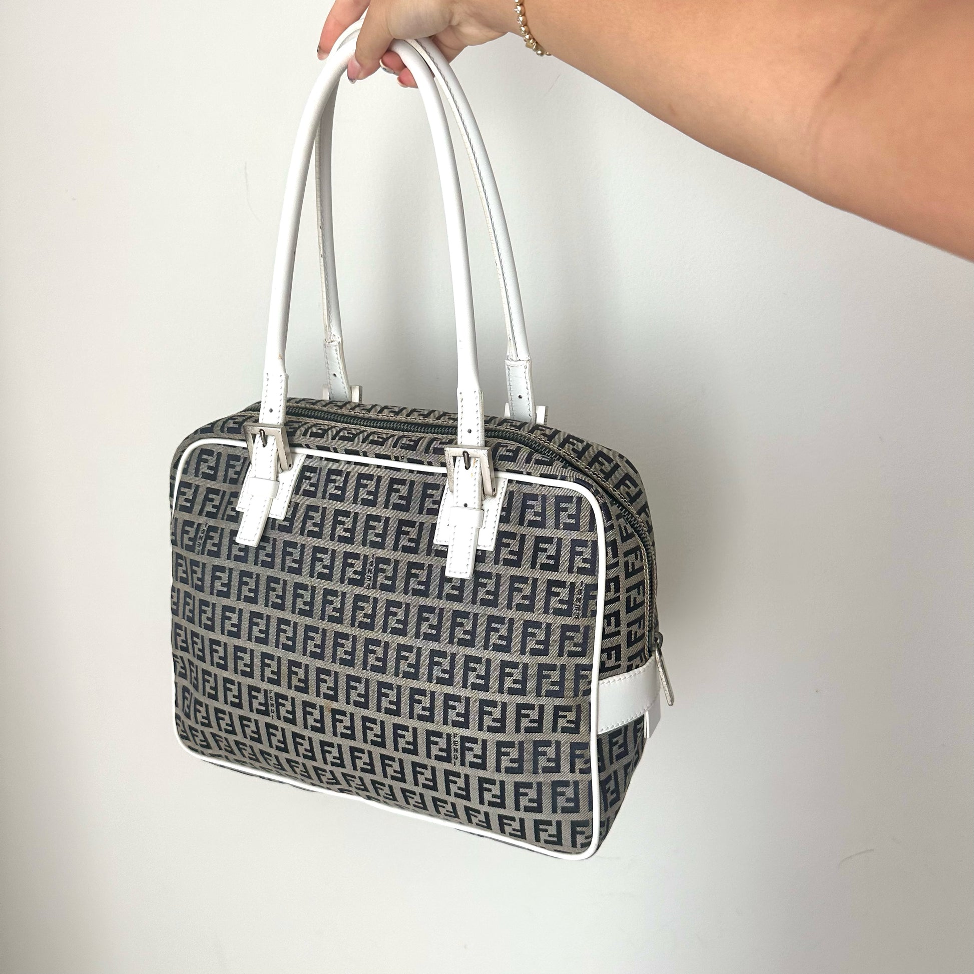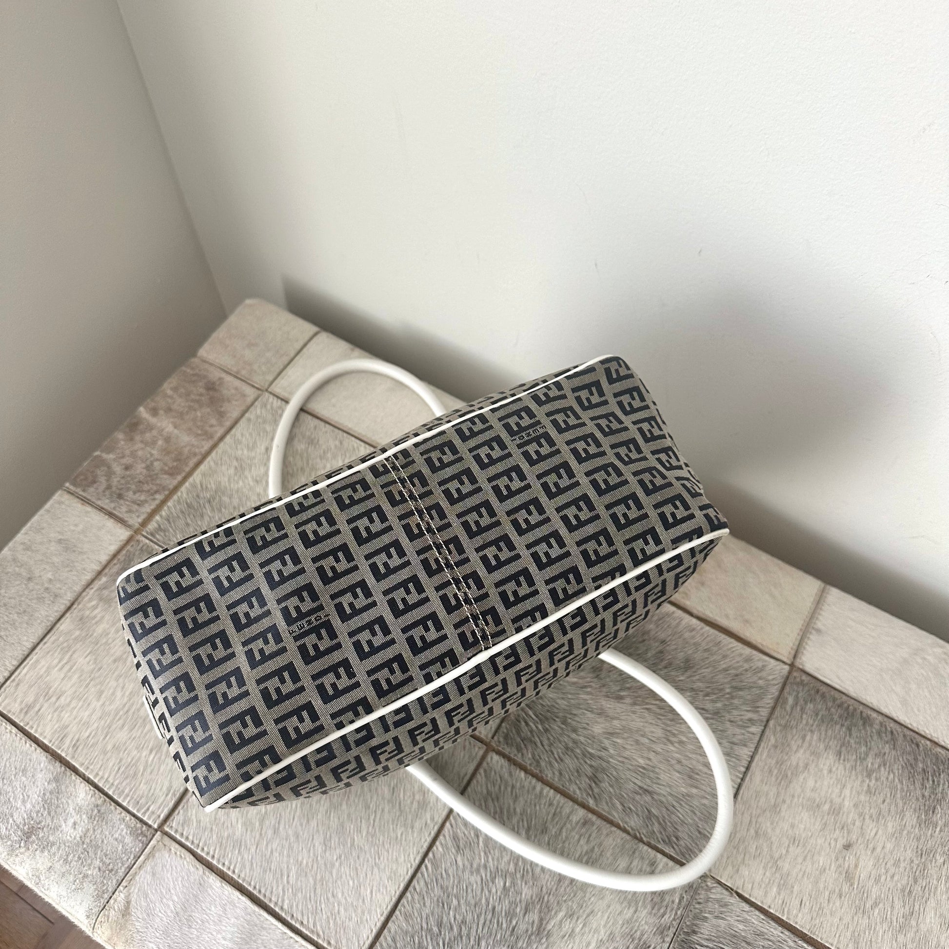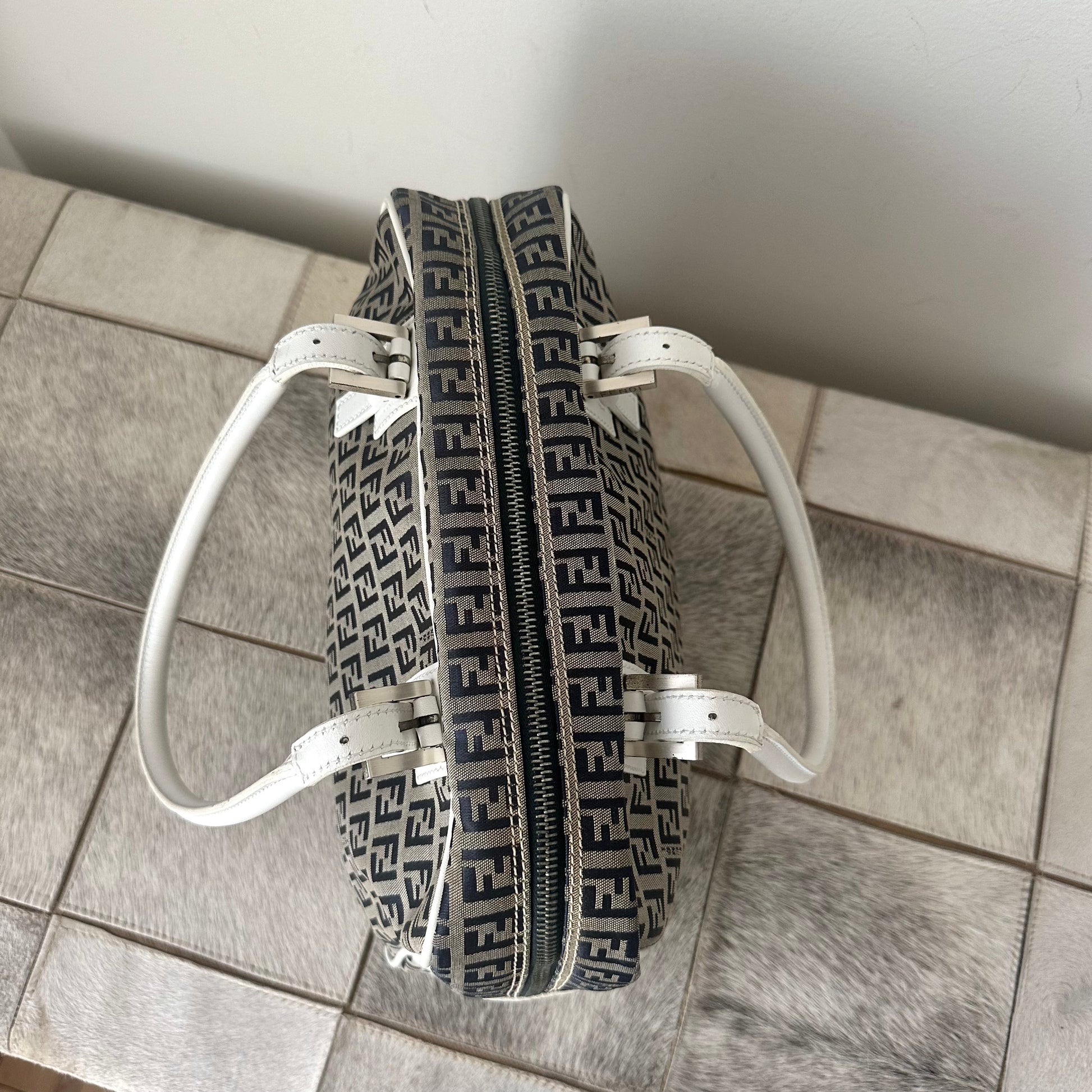 RARE Fendi Zucchino Monogram White Leather Boston Bag