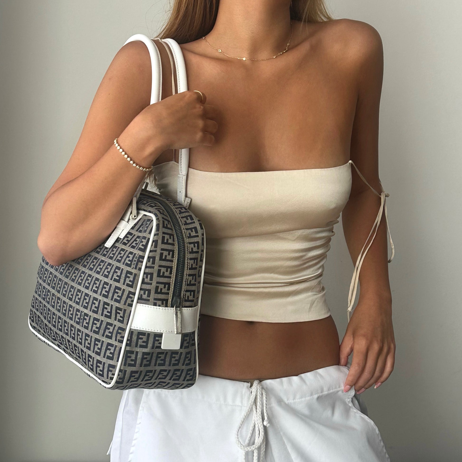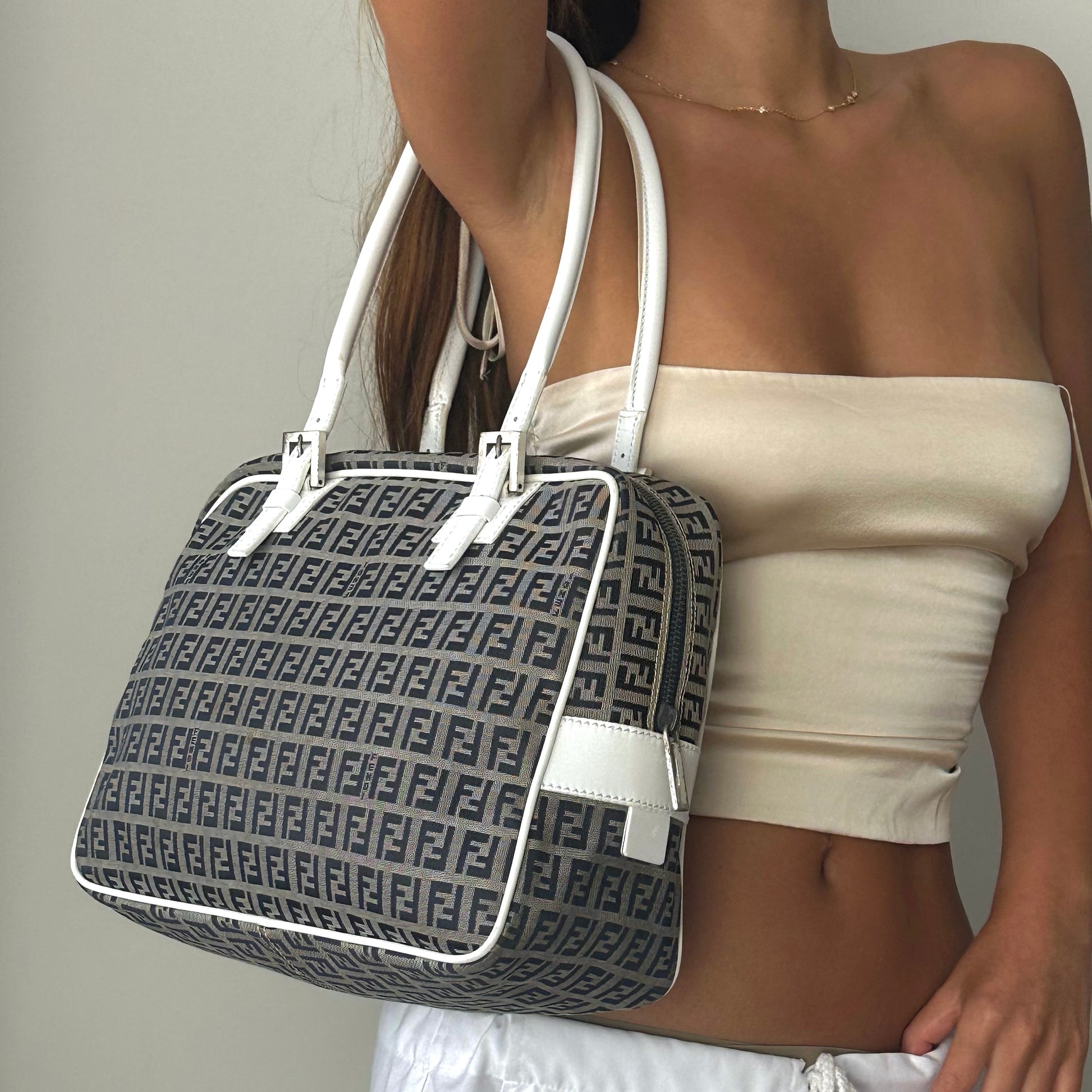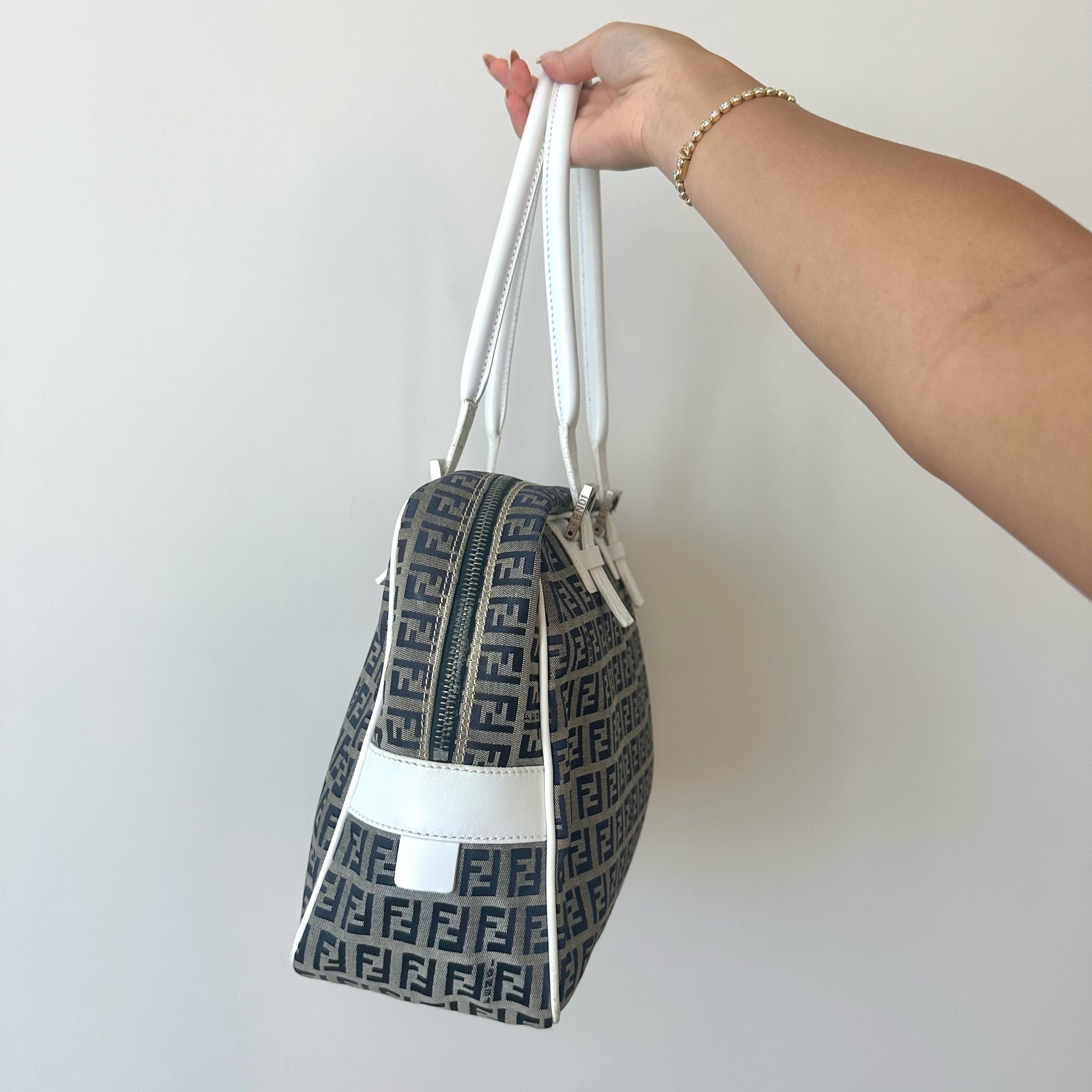 RARE Fendi Zucchino Monogram White Leather Boston Bag