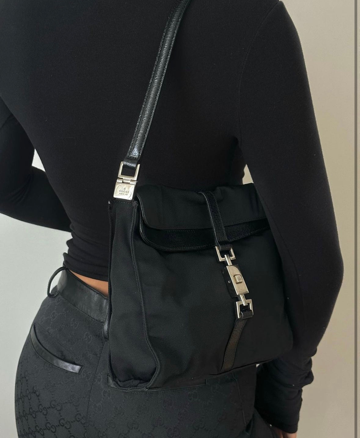 Gucci Black Nylon Jackie Flap Bag