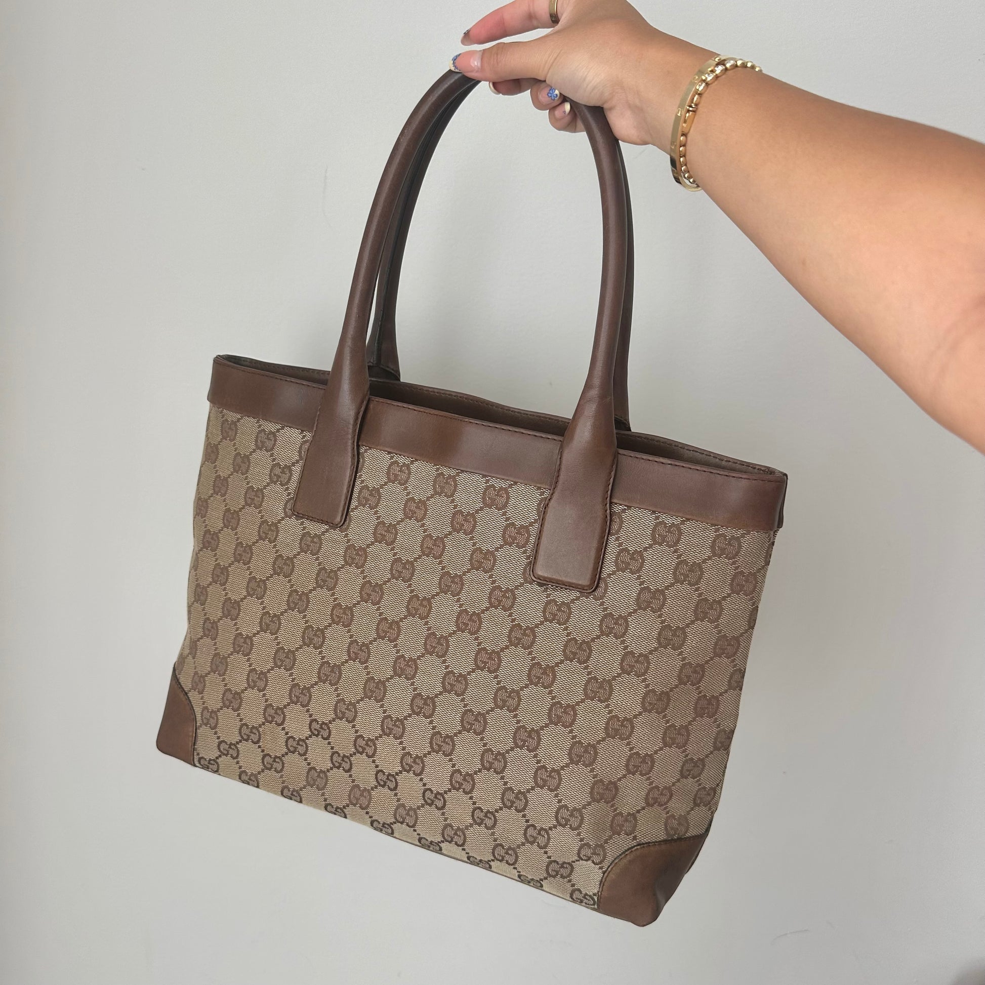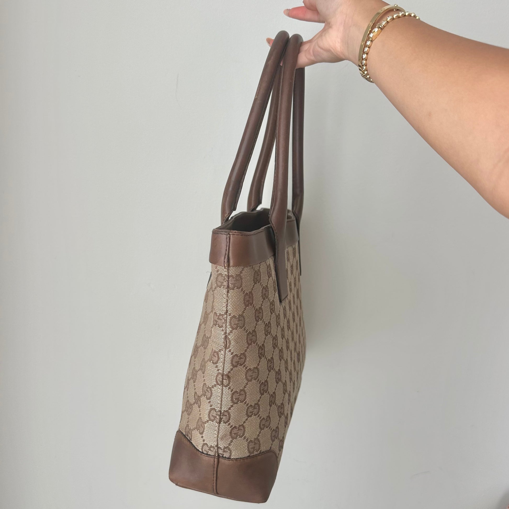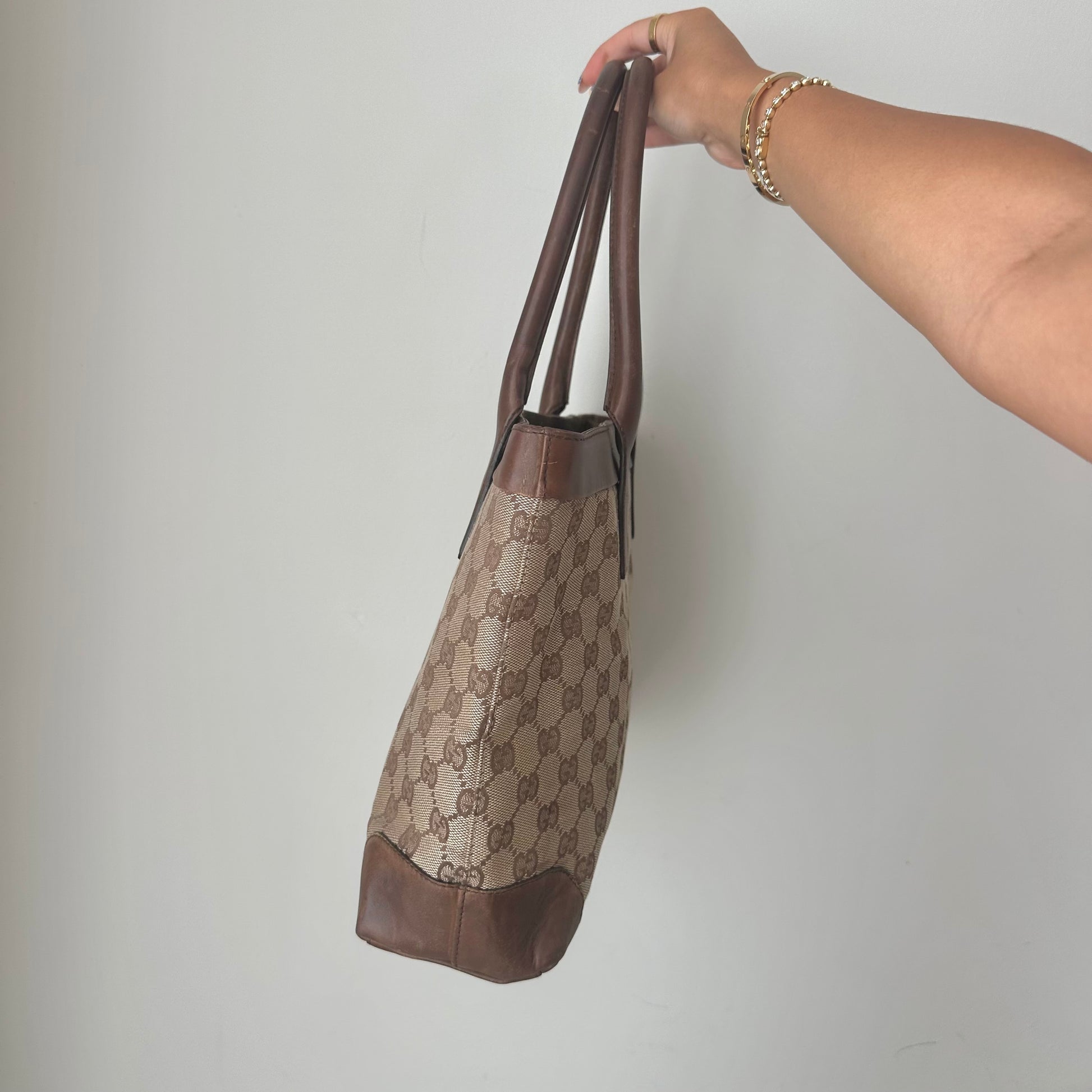 Gucci Brown Monogram Canvas Leather Tote Bag