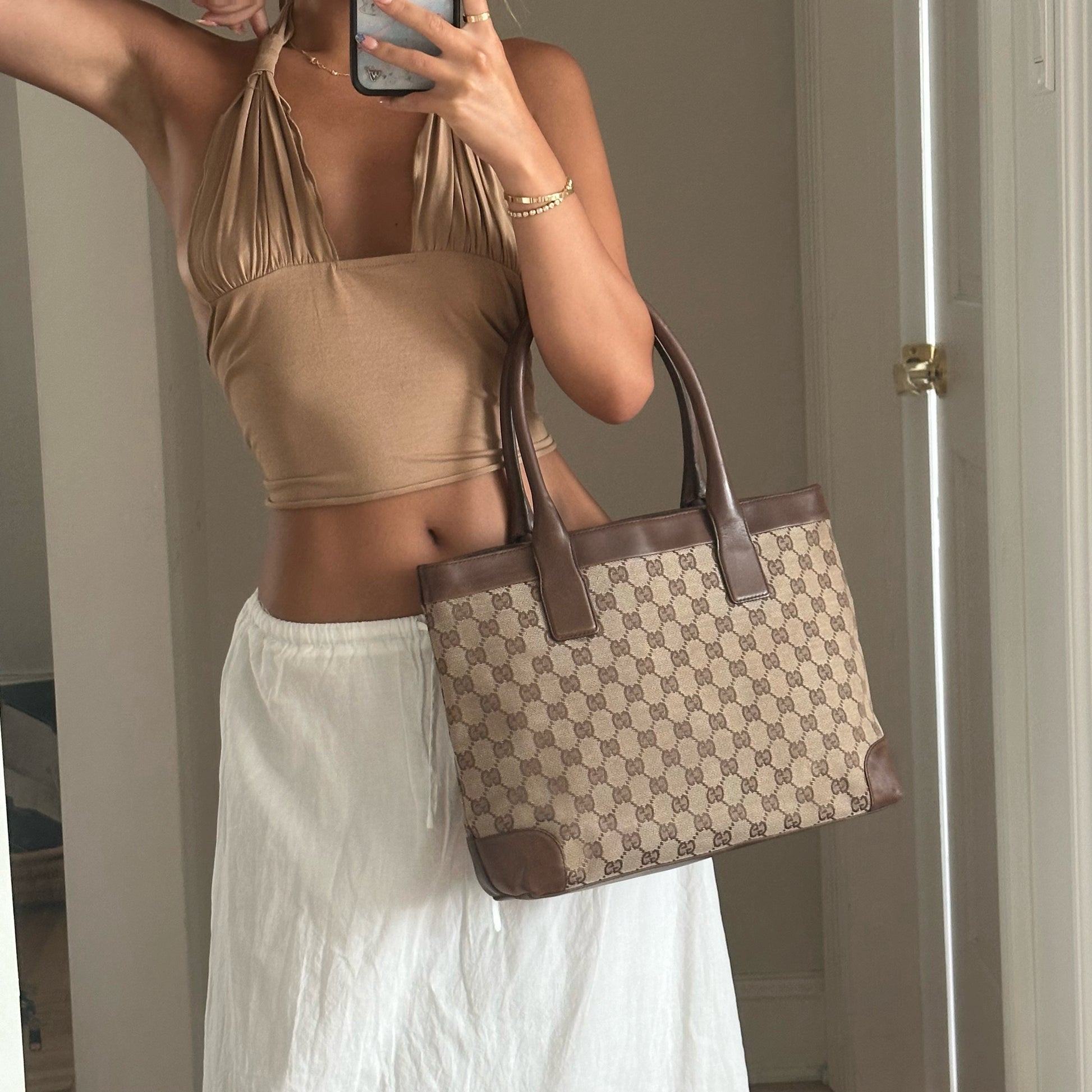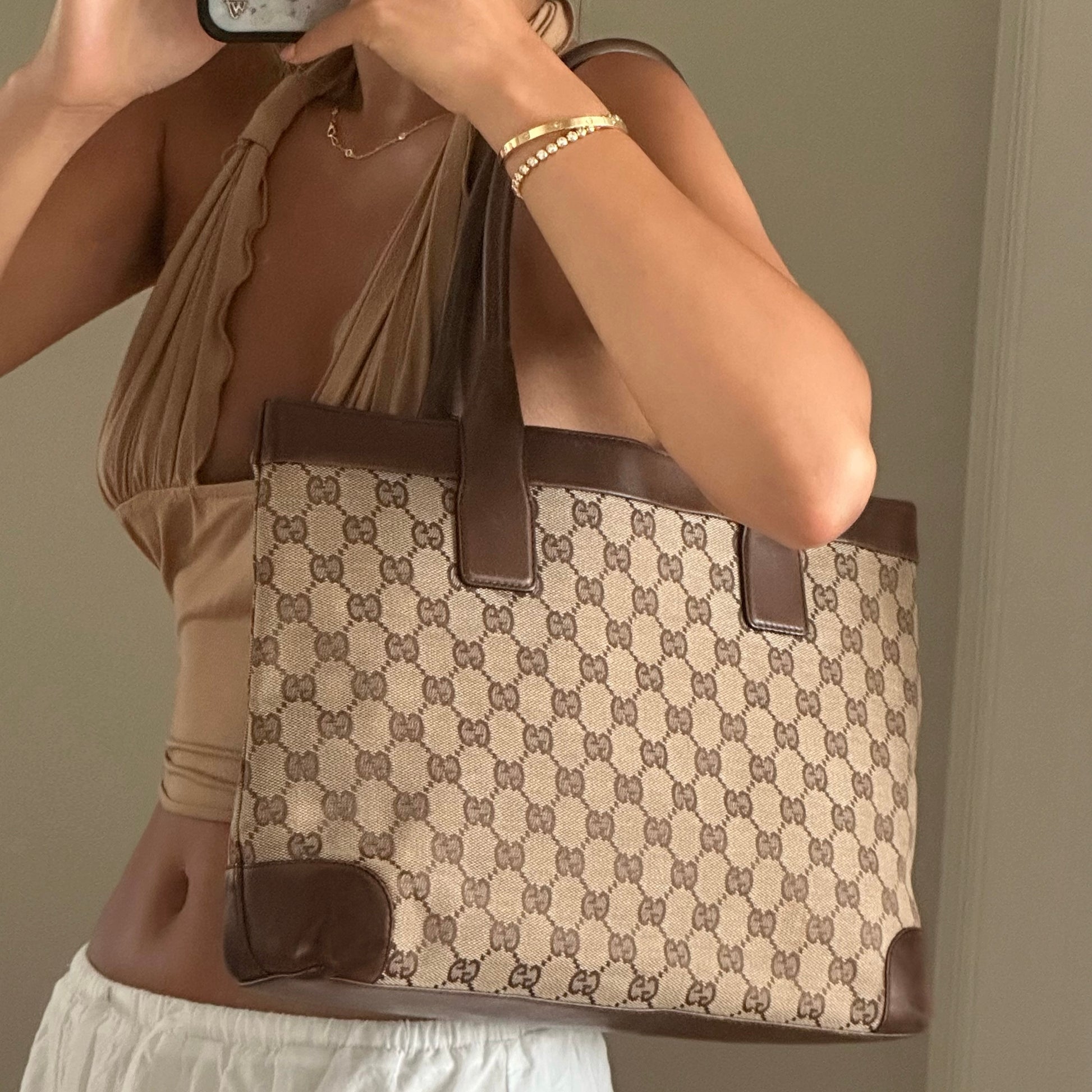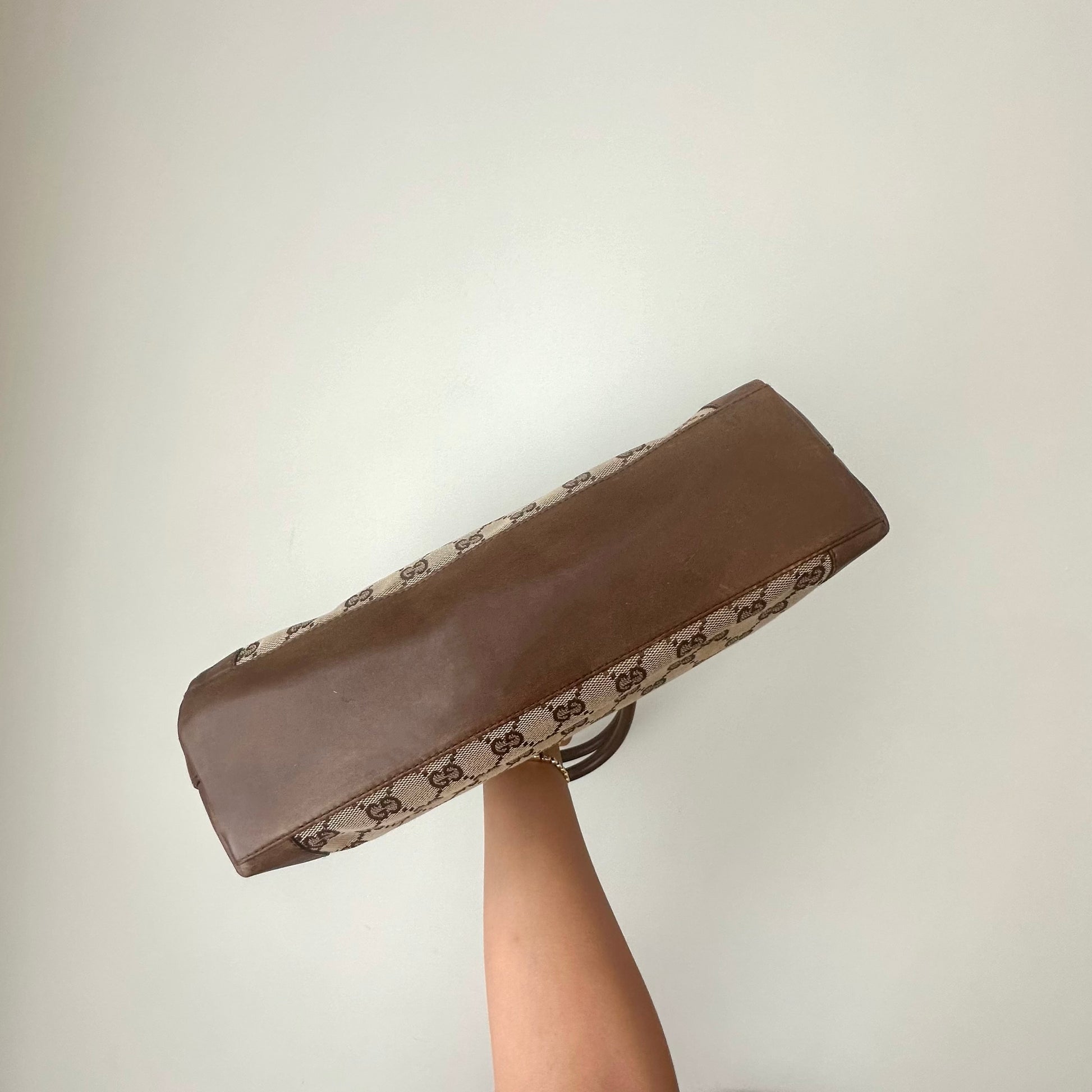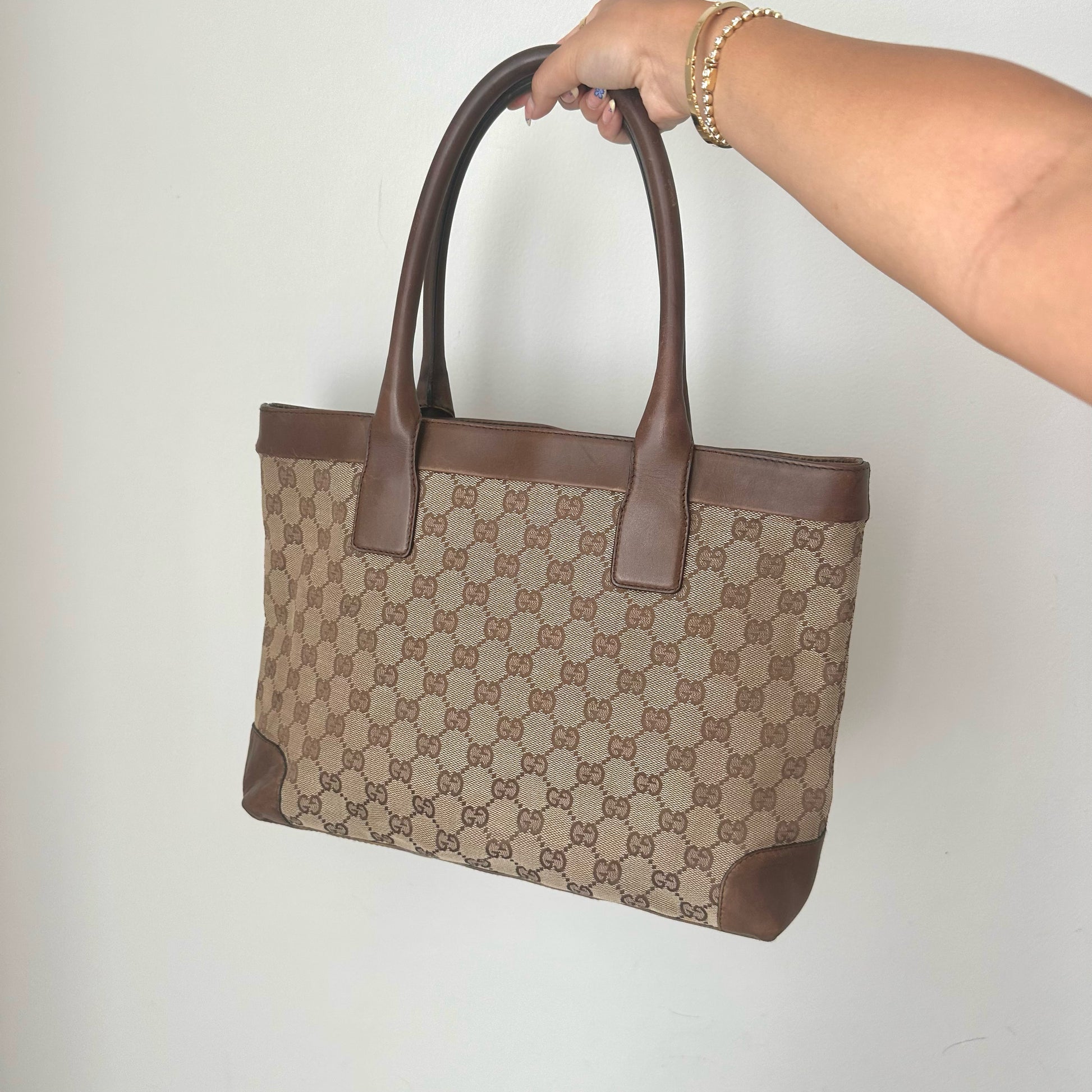 Gucci Brown Monogram Canvas Leather Tote Bag