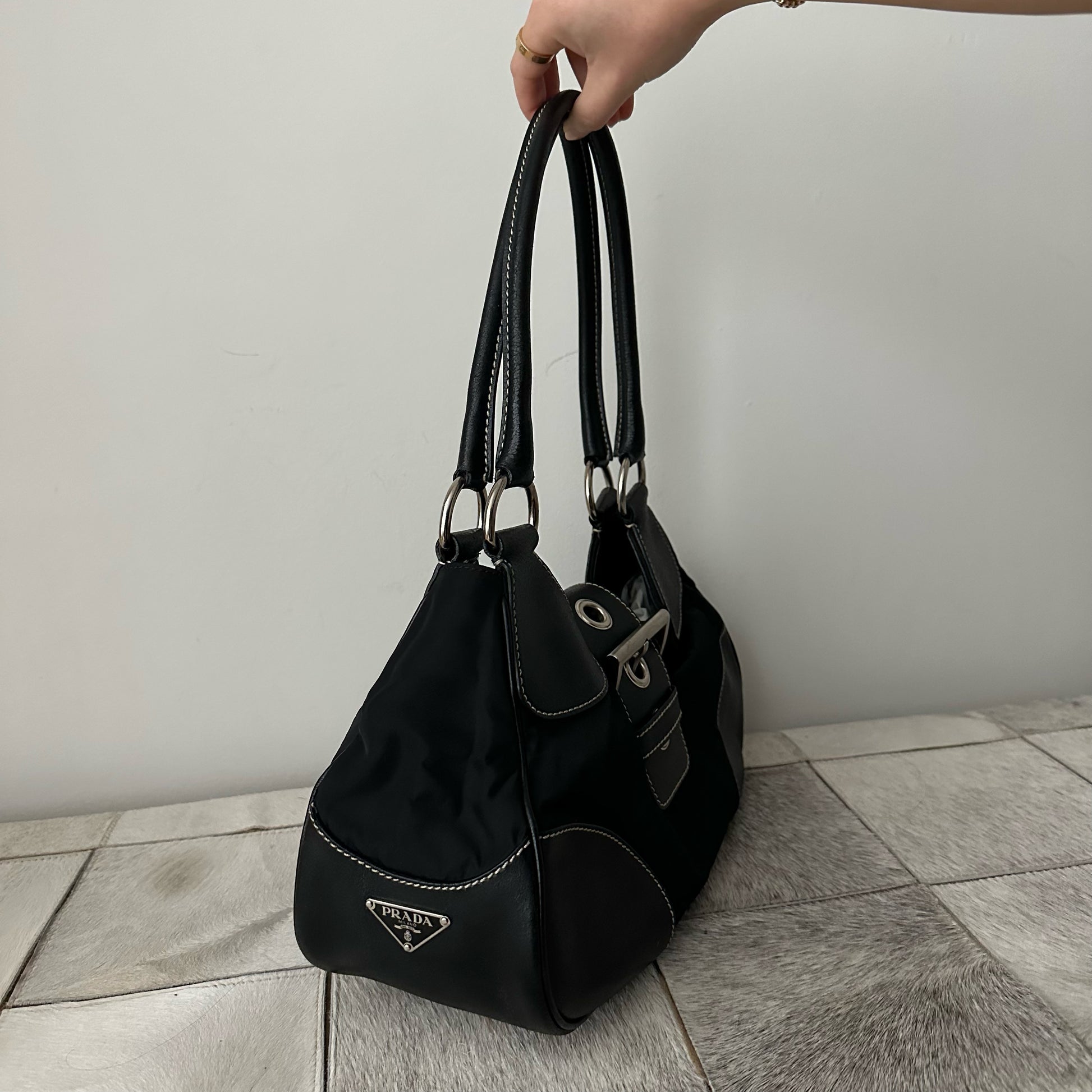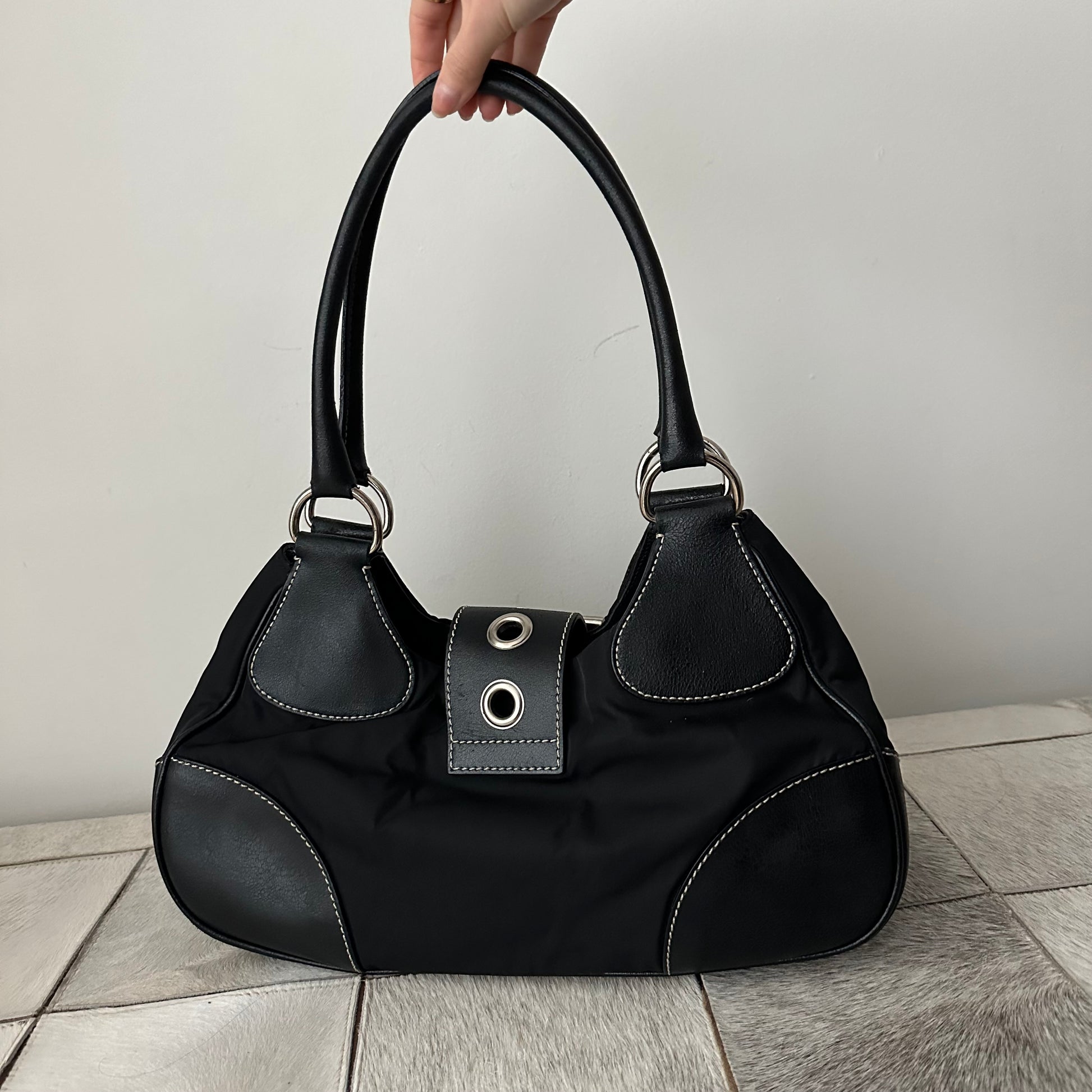 Prada Black Silver Moon Bag