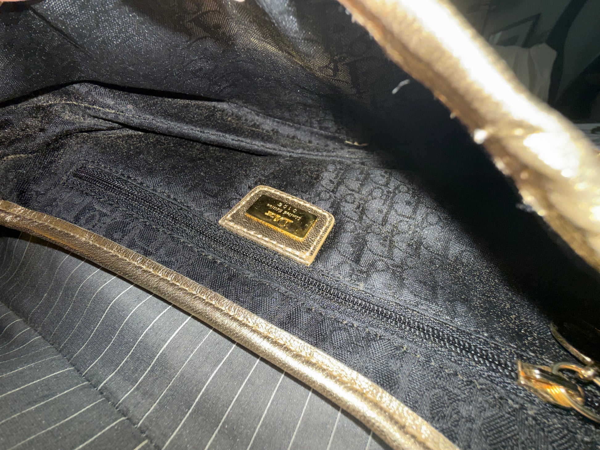 RARE Christian Dior Pinstripe Sequin Floral Saddle Bag