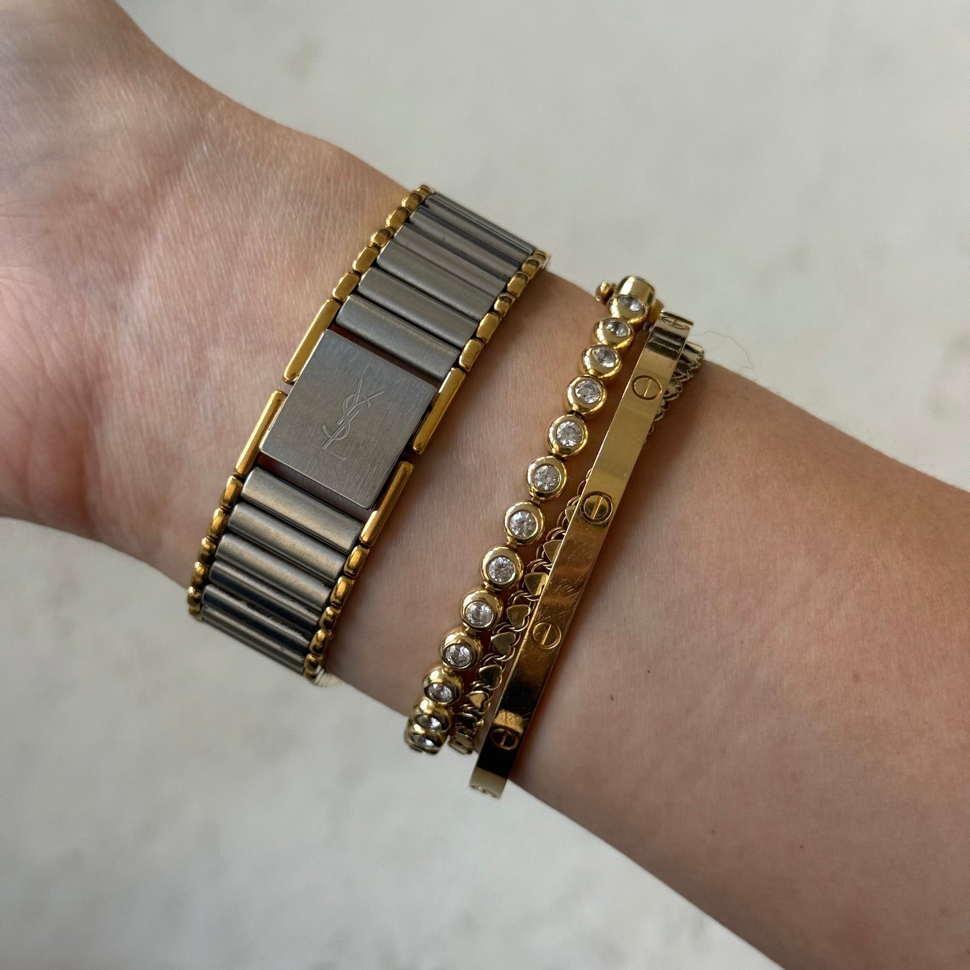 YSL 32mm Two Tone Script Number Watch